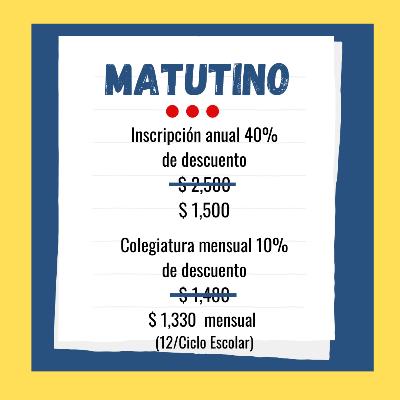 Los alumnos que en el Ciclo Escolar 2024-2025 hayan obtenido 8.5 o más de promedio general, acceden a una “Beca de Aprovechamiento” que consiste en 40% de descuento en colegiaturas. No aplica con otros descuentos.